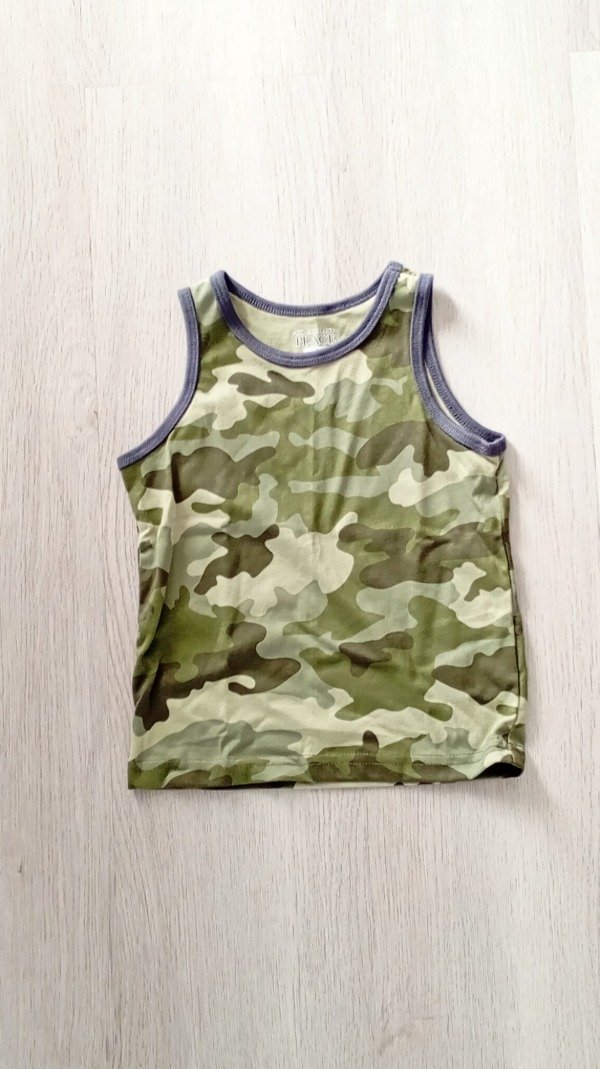 MUSCULOSA COLOR VERDE CON ESTAMPADO MILITAR. IMPORTADA. NUEVA.